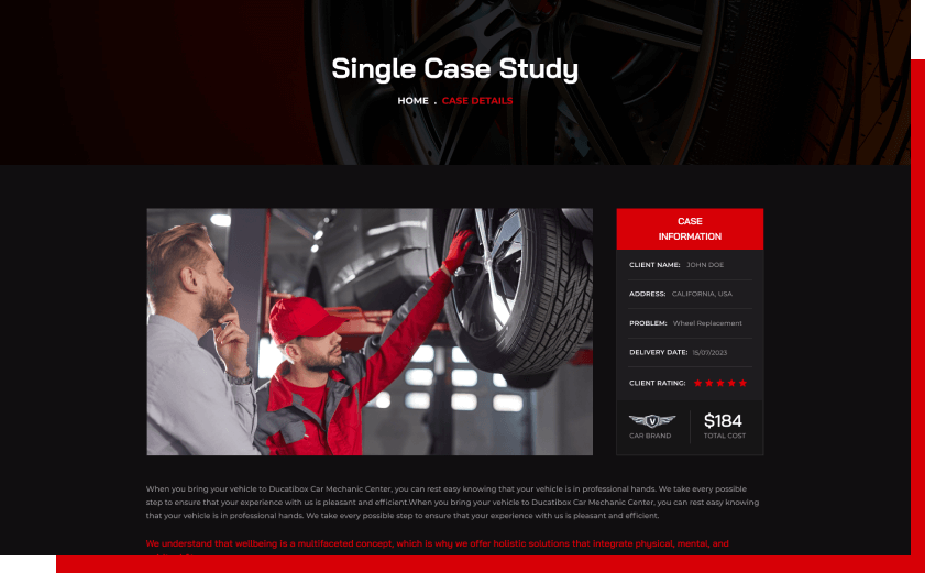 For car enthusiasts following good case details may increase attention towards the website & the service itself. Please check our case details page.